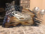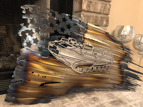 This beautiful handmade Tattered American Flag representing our Great United States military was created using a skilled technique called heating. During this process, the metal will go through many stages and it's the detailed eye of the artist to be sure the desired colors are maintained without applying too much heat. The piece is perfect for any home decor setting.