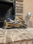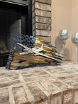 This beautiful handmade Tattered American Flag representing our Great United States military was created using a skilled technique called heating. During this process, the metal will go through many stages and it's the detailed eye of the artist to be sure the desired colors are maintained without applying too much heat. The piece is perfect for any home decor setting.